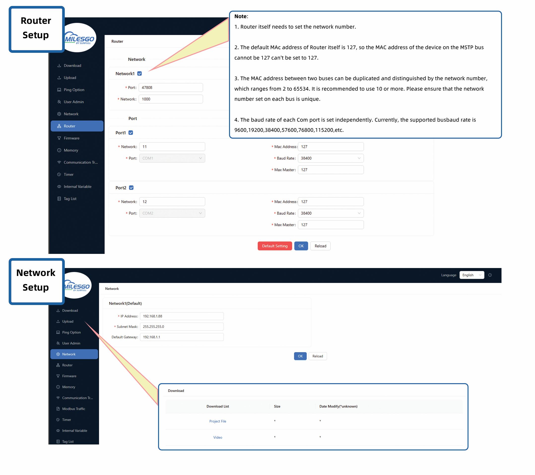Configuration Software X2BACnet(Username:Sunfull-NAS Password:Admin123456)