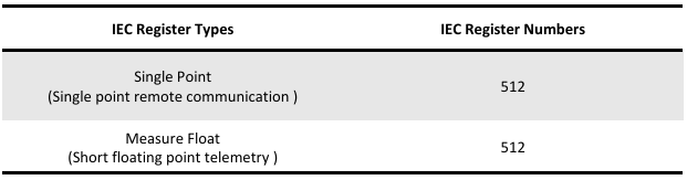 The IEC gateway supports the conversion of various protocols into the IEC104 protocol or IEC61850 protocol. The register types and maximum number of points supported by the IEC gateway are listed in the table below.