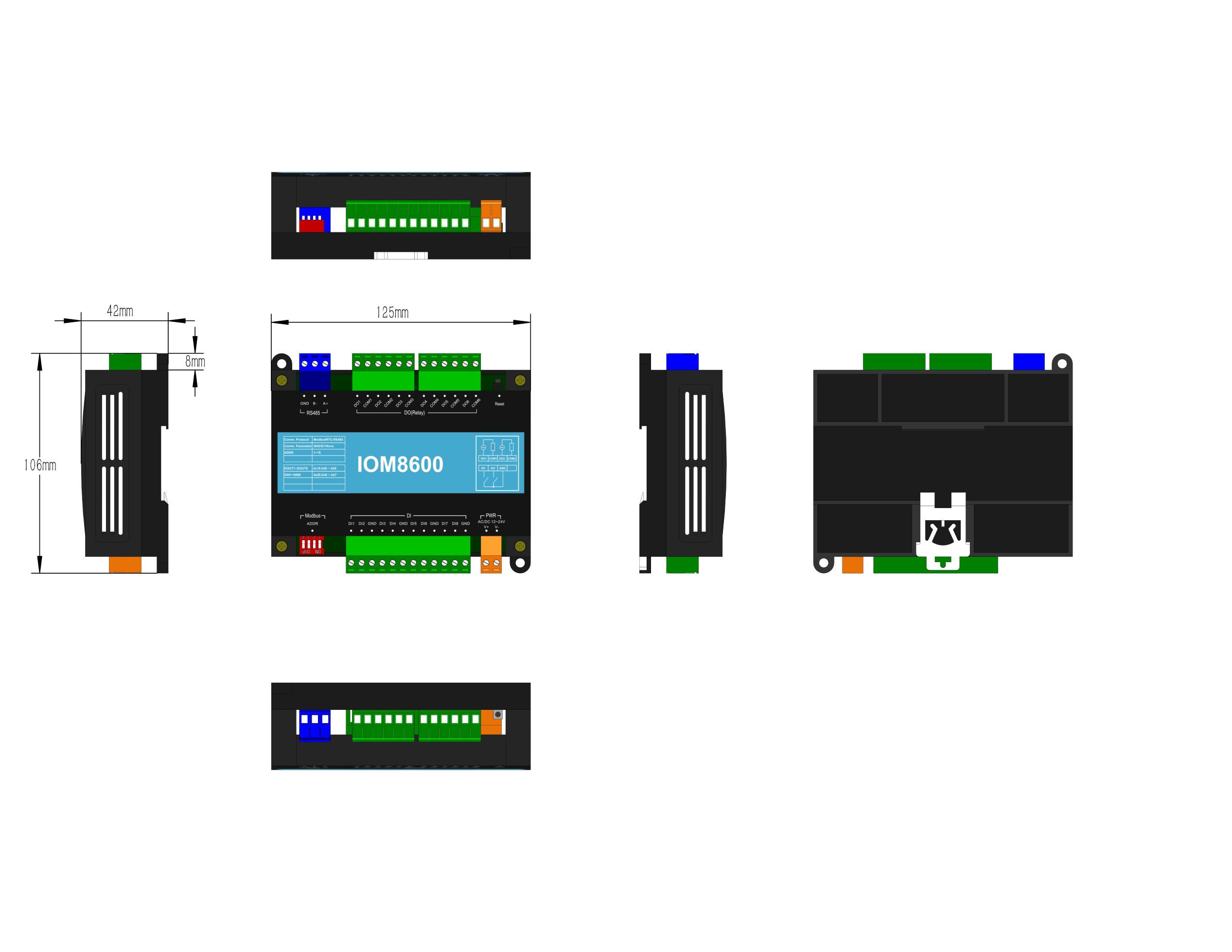 Q④: How to forcibly reset the baud rate of this I/O module to its default value? A④ : Activate the module's hardware reset button (typically labeled Reset). This action immediately restores the baud rate to 9600, ensuring rapid reset of the communication link to its initial state.