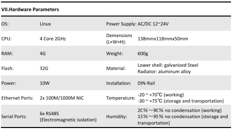 -  Gateway features a built-in InfluxDB time series database; supports customizable storage cycles with a maximum retention period of 3 years;