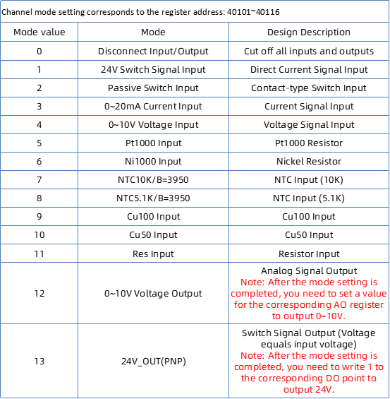 X Mode CFG---Holding Registers(0x03/0x06)