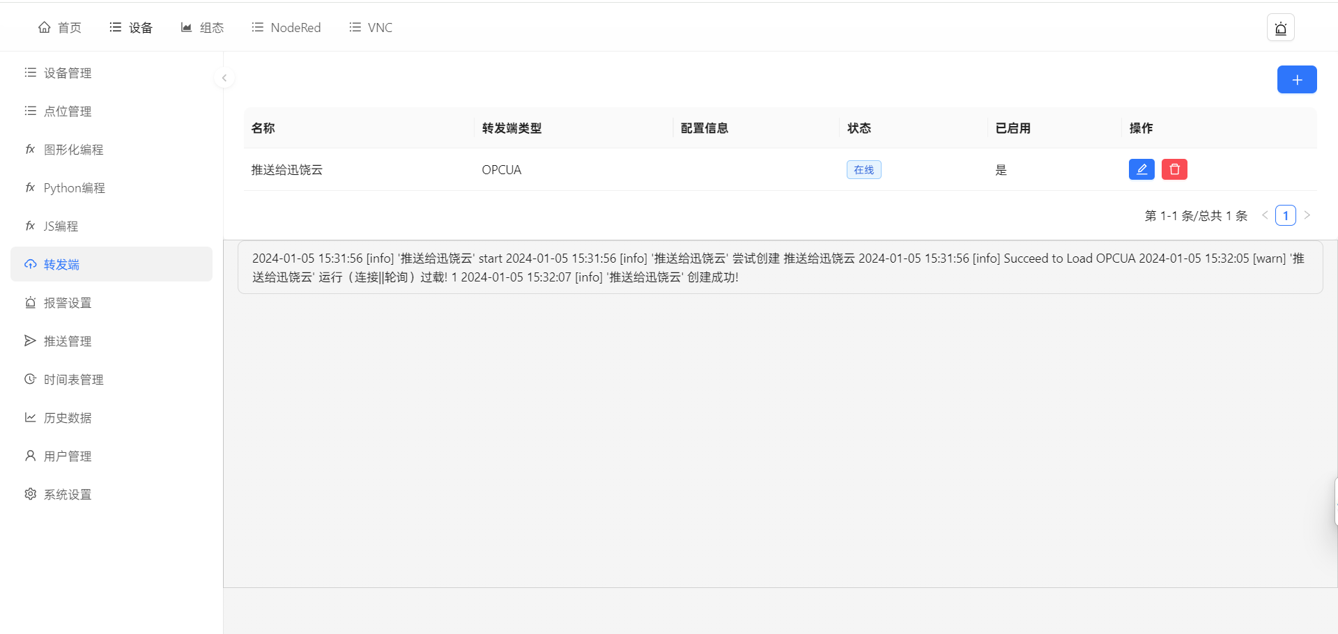 库)、InfluxDB)、SNMP、Simulator; - 转发端支持OPC UA服务器、MQTT、InfluxDB时序数据