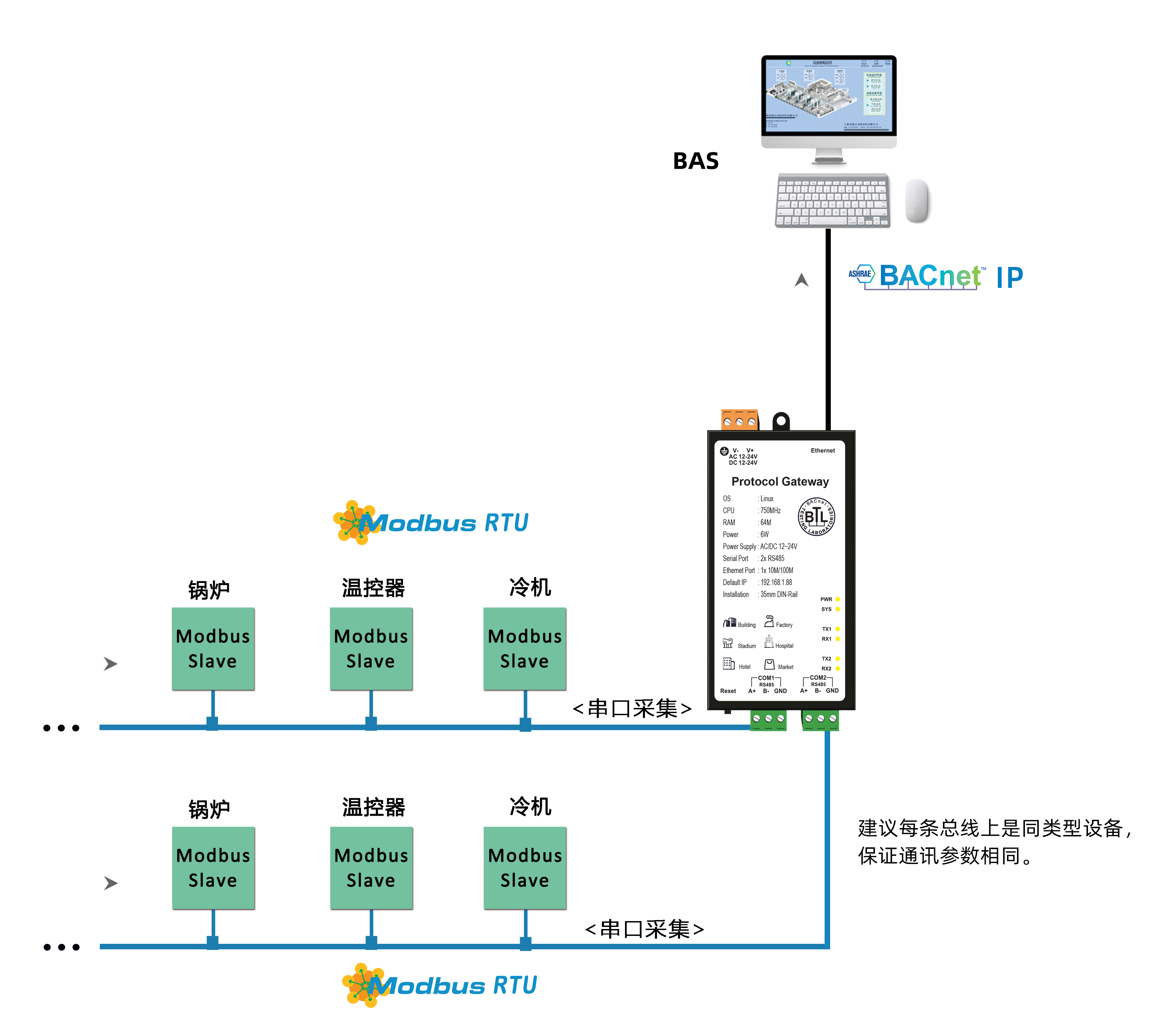 -支持500多种协议同时转为BACnet IP服务器;