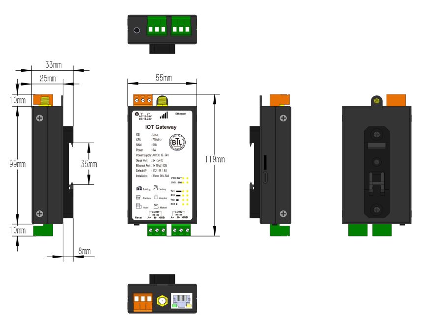 | 接口:1个网口,2个RS485(电磁隔离) |